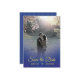 Este é um cartão de Salvar a Data simples, mas elegantemente projetado. As cores azul meia-noite e amarelo girassol foram usadas, o que faz um ótimo par. O design sobrepõe o topo da sua foto de noivado favorita. O verso do cartão apresenta uma citação das Escrituras do Cântico dos Cânticos (Cânticos).