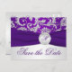 Cartão de Salvar a Data em Damasko Roxo e Prata