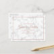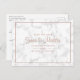Cartão postal moderno para salvar a data com um design simples apresentando seus nomes em uma fonte de letra cursiva dourada rosa falsa elegante e os detalhes do seu casamento em uma fonte sem serifa, dentro de uma borda, sobre um fundo de mármore cinza. Adicione seu endereço de retorno e mensagem pessoal no verso. Este design chique e elegante é ótimo para uma celebração de inverno.