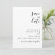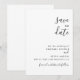 Cartões de salvar a data minimalistas modernos são uma maneira limpa e elegante de anunciar o seu casamento. Com letra cursiva preta e texto simples moderno.