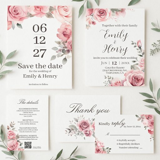 Blush Pink Rose Wedding Stationery SuiteCriado por GlowValeStudio
