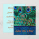Parte do "Conjunto de Casamento de Pavão". Um cartão elegante para salvar a data que, como os outros produtos do Casamento de Pavão, pode ser personalizado com sua escolha de cor e estilo de letra.