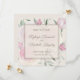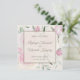 Anuncie a data do seu casamento com elegância moderna. As rosas cor-de-rosa e a folhagem preenchem o fundo, enquanto uma sobreposição é centralizada exibindo os nomes do casal, local do casamento e data. Por trás das informações de salvar a data, há um vislumbre do fundo floral.