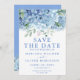 Cartão de Salve a Data Blue Hydrangeas Floral Casa
