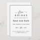 Adicione humor ao seu anúncio com este cartão de Salve a Data “Bebidas Grátis” minimalista. Perfeito para casamentos descontraídos, divertidos ou modernos — design limpo com um toque lúdico para deixar seus convidados animados.