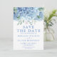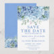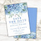 Cartão de Salve a Data Flores de Hortênsias Azuis