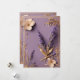 Um cartão de saudação de casamento lindamente trabalhado, adornado com delicados padrões florais em cores pastel macio. A frente apresenta uma elegante ilustração de anéis de casamento entrelaçados com um toque sutil de folha de ouro, simbolizando o eterno laço do casamento. Acima dos anéis, na caligrafia graciosa, está a frase "Parabéns no seu Dia de Casamento."