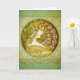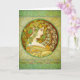 Alphonse Mucha Laurel recebe o cartão. Poster litográfico de 1901. O artista checo Alphonse Mucha era conhecido por suas alegóricas obras. Laurel é uma pintura que apresenta uma bela jovem morena tirada em vinho. Ela olha em frente e veste uma rosa amarela no peito. O poster é intricadamente ornamentado com folhas, azulejos e setas de marijuas interligadas. Um presente de excelente para fãs de Mucha, posters de art nouveau e impressões de vintage.