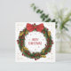 Este elegante cartão de saudação da coroa de Natal é meticulosamente desenhado à mão, fazer adequado para presentes de Natal de negócios, bem como para presentes de Natal pessoais. A frente da carta tem o dentro do "Feliz Natal" da coroa com burgôs festivos, ouro, e bolas brancas brilhantes e design de canto das estrelas. A parte traseira do cartão tem uma mensagem de exemplo com nomes de membros da família. Todos os elementos de texto e gráfico são editáveis e você também pode remover ou alterar a cor de fundo da placa. Este elegante cartão de saudação do quadrado da coroa de Natal tem outros produtos semelhantes, como ornamento da árvore de Natal, caneca, endereço, etc. Faça seu feriado festivo e único com nossos elegantes produtos de coroa de Natal coordenados.