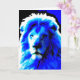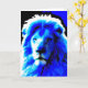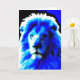 O Rei da Selva. Cartão de saudação com um impressão de tela retrô inspirou uma parte próxima da cabeça de leão em cores marcantes - azul, preto e branco. Um design personalizável para você personalizar com seu próprio texto, imagens e ideias. Criado com fotografias originais e efeitos digitais por Jess Perry.