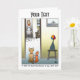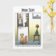 Um cartão com um desenho fofo e engraçado sobre um gato dizendo a um cão para fazer seu dono implorar por uma mudança. A imagem, o fundo e o texto podem ser personalizados. Arte original de BD Cartoons.