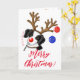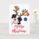 Collie é vestida em seu feriado Rudolph Red Rudolph e renas, completo com decorações de árvores de Paz e Joy. Personalize este cartão com o nome do seu cão, o seu cartões de natal e o seu sentimento de dentro. Também estão disponíveis designs de varejo Labrador Preto, Amarelo e Vermelho Fox.