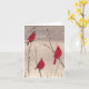 Esta placa de saudação dobrada apresenta três cardinais vibrantes na neve. Intitulado "Cardinals in Winter," a pintura original foi feita em acrílico pelo artista de Ohio David Pepper.