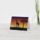 Um simples cartão de boas-vindas dobrado com uma pintura de um pôr do sol na savana africana na frente.