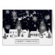 Mande desejos de férias calorosos com este charmoso cartão de saudação da vila de Natal. Apresentando uma acolhedora vila de Natal aninhada entre pinheiros por baixo de um cintilante céu noturno estrelado, o design ganha vida com o trenó do Papai noel e as renas voadoras deslizando através de delicados flocos de neve em queda. O alegre "Feliz Natal" na tipografia moderna acrescenta um toque festivo na moda, fazer perfeito para as saudações da véspera de Natal. Ideal para compartilhar mensagens sentidas com a família e amigos, esta carta traz a magia e a alegria da estação a todos os destinatários.