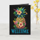 Bem-vindos a alguém com uma explosão de alegria tropical. Este cartão de saudação dobrado apresenta um abacaxi vibrante rodeado por flores e folhagem esmagadoras, com a palavra "BEM-VINDO" em letras negrito. Perfeito para aluguel de férias, quartos de hóspedes ou cestos de aquecimento de casa, ele adiciona um toque quente e ensolarado a qualquer espaço. A mensagem dentro é editável, para que você possa personalizá-la com sua própria nota sincera.