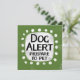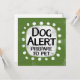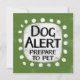 Um design de animais tipográficos, irreverente e fofo, que diz "Alerta de Cachorro, Prepare-se para Pet". Ele apresenta texto preto e vermelho em um retângulo branco com pontos brancos engraçados e brincalhões ao redor dele, tudo em um fundo de cinza.