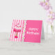 O cartão de cumprimentos de aniversário da nossa menina do Tratado Doce é uma mistura caprichosa de cor rosa, branca e verde, bolinhas e listras. Um adorável suporte de bolo cheio de cupcakes decora o lado esquerdo contra um fundo listrado rosa e branco, com bolinhas de borda escalada. O fundo cor-de-rosa sólido, no lado direito do cartão, tem textos brancos divertidos lendo Feliz Aniversário. Personalize qualquer dentro de texto e saia ao seu gosto. Muito doce cartão para o aniversário de uma menina doce.