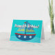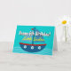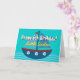 Cartão de saudação de aniversário divertido para crianças. Design de veleiro de brinquedo engraçado para marinheiro. Cartão bonito para crianças com tema náutico. Nome personalizado e número específico da idade. Ilustração Colorida de Navegação / Marítima com texto de celebração personalizado para menino ou menina. Azul aquático e cores do mar. Perfeito para neto/neto/neta.