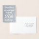 Este elegante design de cartão de aniversário de folha prateada apresenta uma mensagem como "CustomName, desejamos-lhe um excelente de 97 anos!" na frente, onde o nome e o número de aniversário podem ser personalizados. O dentro apresenta uma mensagem de aniversário personalizada. Um cartão de aniversário como este poderia ser usado para desejar um feliz aniversário a alguém.