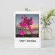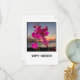 Fuchsia, orquídea cor-de-rosa em frente ao cartão de aniversário de fotos do pôr do sol.