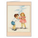 Cartão de saudação de aniversário retrô/vintage. Adorável garotinho e garota com bolo de aniversário!