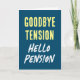Adeus, tensão, saudação de pensão para aposentado. Cartão de aposentadoria engraçado para funcionários, colegas de trabalho, parceiros etc. Uma citação bonita para homens e mulheres reformados. Cores personalizáveis. Vintage aflige a tipografia do olhar.