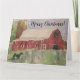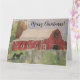 Cartão de cartões de natal de Natal com celeiro vermelho e cavalo desejando um país no ano novo - personalize seu estilo e nome personalizado e detalhes com memorável pintura de fazenda impressionista da artista rural Sophie Dare.