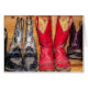 Botas de cowboy vestidas e algemadas em cores divertidas e designs à espera de serem vestidas para trabalhar ou brincar