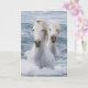 Dois cavalos brancos da Camargue natação juntos em direção à costa no sul da França. Há uma imagem adicional dos cavalos dentro do cartão. Todas as imagens são de Carol Walker e Imagens Vivas de Direitos autorais de Carol Walker.