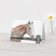 Pintei este belo cavalo usando uma pincel digital. Belo cavalo majestoso em tons de marrom, azul e branco parados por um posto de cerca. Toda arte original de Laurel Jeninga. Consulte mais criações em: www.createdbylaurel.com www.zazzle.com/javajeninga*
