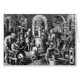 O alquimista mestre está sentado numa cadeira estudando manuscritos raros de alquimia com seu assistente. Os aprendizes operam os vários aparelhos de laboratório em processo de destilação. Morteiro e pélete para misturar ingredientes, foles para aquecer o fogo. Os fornos são tendidos pelos antigos adeptos para aquecer os retornos e coletar destilado nos receptores. Na parte inferior lê-se "O suco do fogo, da arte e corpos celestes/água é observado, limpo e o mais importante.
