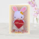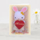 O bebê mais bonito, Bunny, segurando um coração vermelho está pronto para desejar a sua mãe um Dia de as mães feliz. Ela é branca com orelhas grandes rosa, veste um vestido elegante e calçados amarelos. Ela tem lindas flores amarelas em sua cabeça e tem um grande coração vermelho em suas mãos pequenas, no fundo um papel de parede colorido. Ela torna este cartão de saudação absolutamente adorável. O cartão vem com o texto "Mamães, eu te amo" mas você pode mudá-lo se quiser. Não se esqueça de personalizar o dentro de texto do cartão e torná-lo pessoal. O coelho e o coração são minhas criações originais. Lulu o coelho pode ser visto na minha loja online AresCrea em Meylah.com