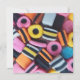Design de diversão e colorida que inclui produtos de confeitaria à base de alcaçuz ou doces (doces de alcaçuz) com cores preta, branca, amarela, laranja, azul e castanha. Eu tirei esta fotografia em abril de 2022. Essas doces são meus favoritos por muitos anos e esta design divertida é brilhante e alegre e seria excelente em qualquer produto. Trata-se de um conjunto de produtos de confeitaria à base de alcaçuz produzidos pela primeira vez em Inglaterra, no Reino Unido.