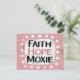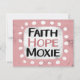 "Faith Hope Moxie" é um design de texto divertido com forma de sotaque branca cercado por pontos brancos texturizados.