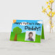 Cartão de Dia de os pais para crianças de crianças adoráveis que você pode personalizar online adicionando sua própria foto digital. Carregue uma foto! Primavera de dia ensolarado bonito ou cena de verão com grama verde, uma árvore verde, céu azul com nuvens e sol, e flores no campo. Diversão e alegre cartão de dia de os pais de verão de qualquer filho ou filha.