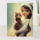 CARTÃO DE SAUDAÇÃO DE GATO MENINA PENSANDO EM VOCÊ