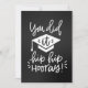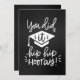 Cartão de saudação de graduação com Você fez isso e Hip Hip Hooray mensagens de caligrafia moderna e boné de formatura sobre fundo preto no quadro. Design perfeito para mudar o texto de saudação nas costas com a ferramenta Zazzle fácil de usar! Visite o compro para ver toda a coleção.