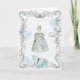 O cartão de boas-vindas do século XIX em azul. Senhora vitoriana. Borboletas e flores azuis. Colagem digital a partir de imagens antigas.