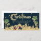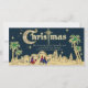 Adicione seu nome impresso, nome comercial, verso ou mensagem personalizada a este elegante cartão tradicional de natal religioso cristão. Cena noturna do deserto com sábios viajando, palmeiras de areia e céu azul escuro.