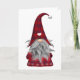 Gnomo de cinza de inverno giro vestindo uma roupa de xadrez com flocos de neve e um coração no boné Feliz Cartão de Natal.