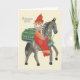 Vintage / Retro Cartão de Vestígio Polonês. Papai Noel num burro! Wesołych Świąt! Feliz Natal!