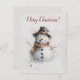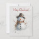 Cartão de Natal feliz em estilo retrô com pintura aquosa de boneco de neve em chapéu