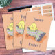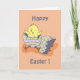 Um cartão de Páscoa divertido com um pintinho amarelo a piscar enquanto ele sai da sua carapaça. © ArianeC Ilustrações — Todos os direitos reservados