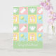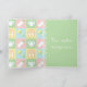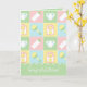 Quatro quadrados em pastéis macios de cor rosa, verde, azul e amarelo são emoldurados por um design branco como marcas de pontos e decorados com ícones fofinhos, com tema para bebês, de uma garrafa, fralda, chocalho e bib. Um pacificador azul brilhante, rosa e amarelo adiciona um toque final divertido às costas. Personalize o sentimento no painel de sobreposição, na frente e no interior, com sua mensagem de escolha para criar uma placa verdadeiramente exclusiva para qualquer chá de fraldas ou mãe expectante. Você também pode trocar para o tamanho da placa de anotação para facilmente transformá-la em um cartões de agradecimentos doce após o chá. Certifique-se de verificar a coleção de cheio Baby's Quilt para mais ofertas e produtos de excelente para um chá de fraldas ou para o pequeno da sua vida.