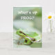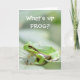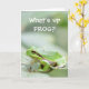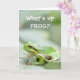 Cartão de saudação de um sapo de árvore verde, sentado sobre folhas com o texto: "O que se passa, Sapo?", uma analogia com o Insetos Bunny dizendo "O que se passa, Doc?" Você pode enviar isso a um amigo.