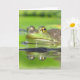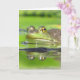 Sapos verdes em uma almofada de lírio em um cartão de saudação de pântano.