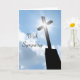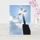 Foto original colorida com uma silhueta de uma cruz de igreja com efeito estrela brilhante iluminado contra o céu azul com nuvens brancas. O script "With Sympathy" é escrito na parte frontal e "Your Text Here" está no dentro para personalizar ou apagar facilmente a sua mensagem mais tarde. Um belo, inspirador, atencioso e simbólico cartão religioso para mostrar-vos o que querem.