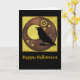 Raven e uma lua de cheio Steampunk são o centro deste cartão de Halloween que pode ser usado para enviar uma saudação ou um convite.
