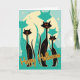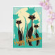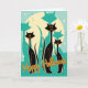 Este design de Halloween inspirado no MCM apresenta um triunvirato de gatinhos mod com seus longos pescoços e corpos delgados, que foram toda a raiva na era moderna do século médio. Criado em tons de lacre, laranja, preto e creme, este design é impressionante e único e irá certamente vomitar qualquer fã retrofilo ou vintage na sua lista. Além disso, a saudação de dentro também pode ser personalizada de acordo com o seu gosto ou você pode excluí-la totalmente se preferir.